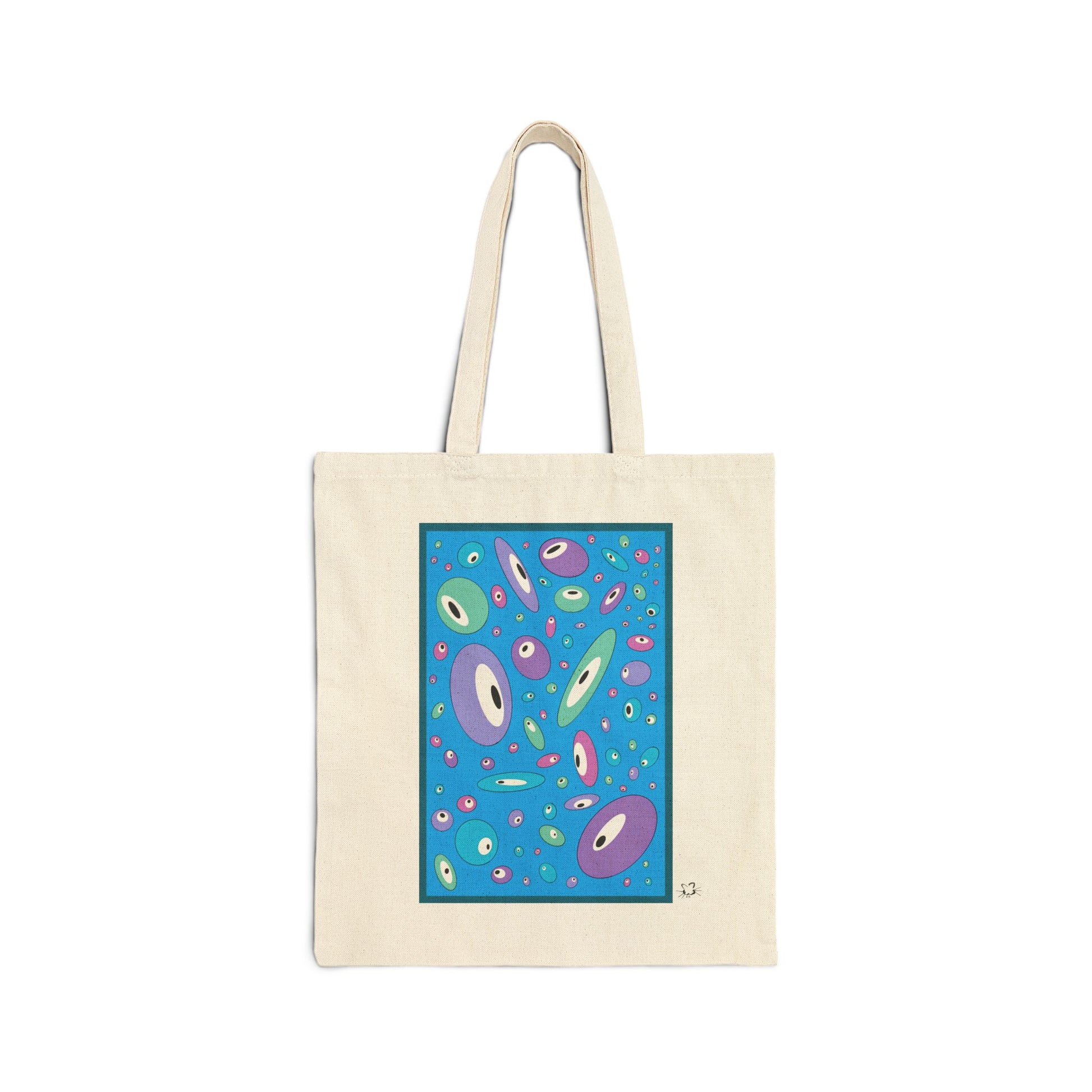 Elevate your everyday carry with this vibrant Cotton Canvas Tote Bag. Perfect for grocery shopping, beach outings, or running errands, it embodies versatility and style. The unique design adds a splash of personality, bringing a joyful vibe to your day-to-day activities. Ideal for eco-conscious individuals, art lovers, and fashion enthusiasts alike, this tote makes for a thoughtful gift for birthdays, holidays, and special celebrations. Embrace sustainability while making a statement with this chic and practical accessory. Product features - 100% cotton canvas for durability and strength - Flat corners for a sleek design with no extra space - Reinforced self-fabric handles for comfortable carrying - Heavy fabric for added sturdiness - Available in natural and black colors for versatile styling Care instructions - Do not iron directly over the printed area - print may stick to the iron. - Spot clean - Do not bleach - Line dry